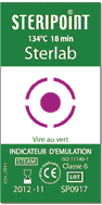 le Steripoint Prion 18 est indicateur d’émulation classe 6 destiné au Control des paramètres de stérilisation à la vapeur d\'eau à 134°C. Le virage au vert de l\'encre réactive indique la conformité du cycle de stérilisation vapeur soit : 134°C durant 18mn