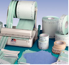 Rouleau de papier de stérilisation. Se compose de deux parties: une en fine plastique transparente et l\'autre en papier médical.