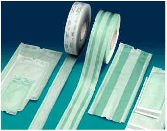 Rouleau de papier de stérilisation. Se compose de deux parties: une en fine plastique transparente et l\'autre en papier médical.